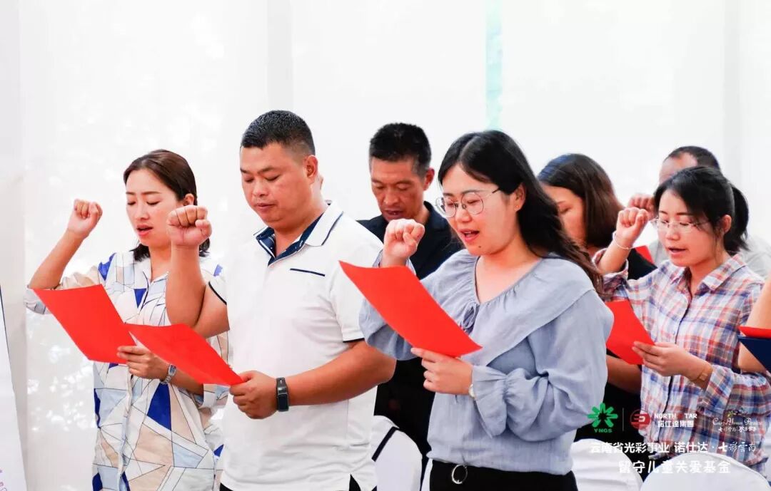 结业典礼以及老师们庄严宣誓 结业典礼的最后,参加本次培训的老师们在庄严的宣誓中承诺,会将爱心和此行的收获带回学校,充分发挥心理辅导教师的职责,学以致用,将留守儿童的心理健康教育真正落到实处,为留守的孩子们带去最贴心的辅导与关怀。 |